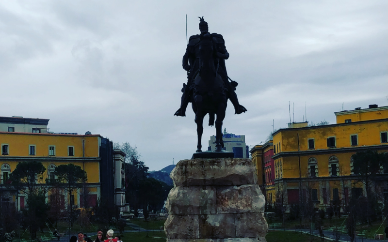 A Tirana, Place Skanderbeg et sa statue